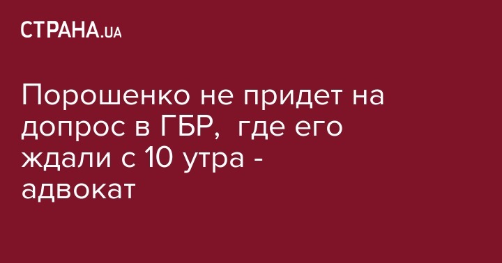 Порошенко не придет на допрос в ГБР, где его ждали с 10 утра - адвокат