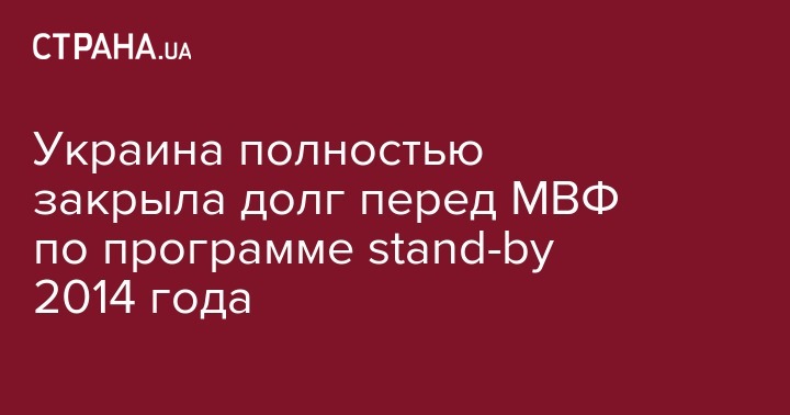 Украина полностью закрыла долг перед МВФ по программе stand-by 2014 года