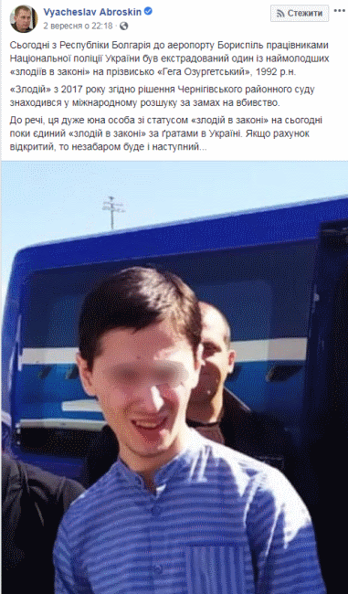 "Из Республики Болгария в аэропорт Борисполь работниками Национальной полиции Украины был экстрадирован один из самых молодых "воров в законе" по кличке "Гега Озургетский", 1992 г. р.