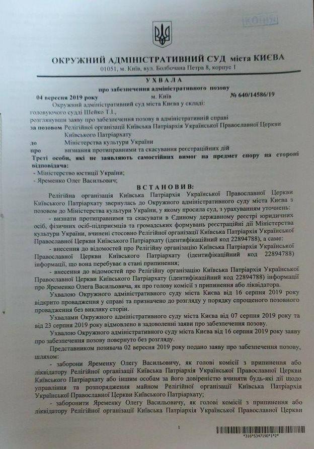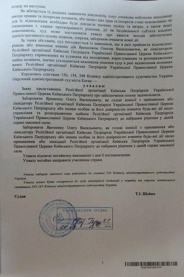 Суд Киева запретил ликвидировать УПЦ КП Филарета. Документ