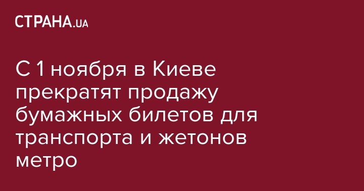 В Киеве с 1 ноября будет прекращена продажа бумажных билетов в наземном общественном транспорте, а также зеленых бесконтактных карточек и жетонов в метро. Об этом со ссылкой на директора департамента информационно-коммуникационных технологий КГГА Юрия Назарова сообщает "Обозреватель".