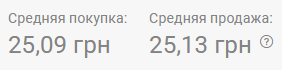 В 12:30 средняя покупка 25,10 грн, продажа 25,14 грн. При этом в некоторых столичных обменках продажа упала ниже 25 грн.