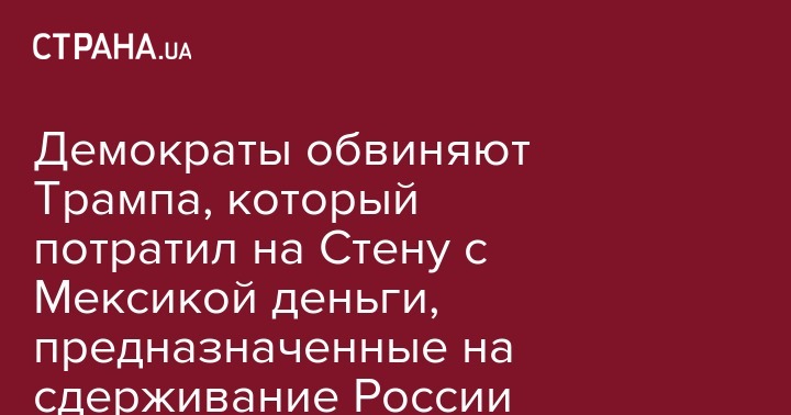 Демократ Чак Шумер обвинил президента США Дональда Трампа в том, что он задействовал $771 млн, первоначально предусмотренных на сдерживание РФ в Европе, для строительства стены на американо-мексиканской границе.
