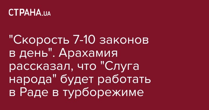 "Мы задали этакую рамочку турборежима работы Верховной Рады, что означает принятие не менее 7-10 законопроектов за пленарный день. И в связи с этим очень много работы в комитетах, потому что все законопроекты должны проходить комитеты, достаточно быстро обсуждаться...", - сказал Арахамия.