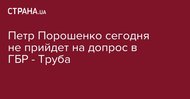 Сегодня, 6 сентября, экс-президент Петр Порошенко не прийдет на допрос в ГБР. Об этом в своем Телеграмм канале сообщил директор ведомства Роман Труба.