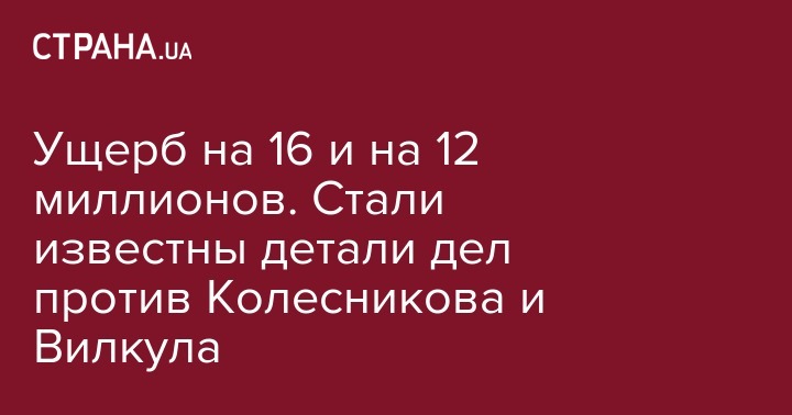 Экс-председателя Госагентства Украины по управлению государственными корпоративными правами и имуществом, экс-нардепа Дмитрия Колесникова, которому ранее вместе с экс-нардепом Вилкулом сообщили о подозрении, заподозрили в причинении убытков государству на сумму более 16 млн грн. Об этом сообщает пресс-служба прокуратуры Днепропетровской области.