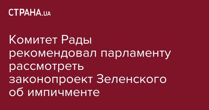 В пятницу, 6 сентября, Комитет Верховной Рады по вопросам государственного строительства, региональной политики и местного самоуправления рекомендовал парламенту рассмотреть законопроект об импичменте президента, поданный Владимиром Зеленским. Об этом сообщает корреспондент "Страны".