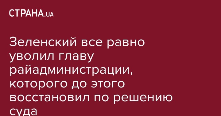31 августа Зеленский, выполняя решение Верховного суда от 15 августа 2019 года, возобновил на должности главу райадминистрации в Киевской области, которого в 2017 уволил Президент Петр Порошенко.