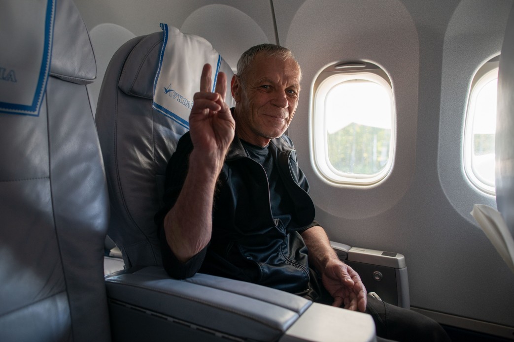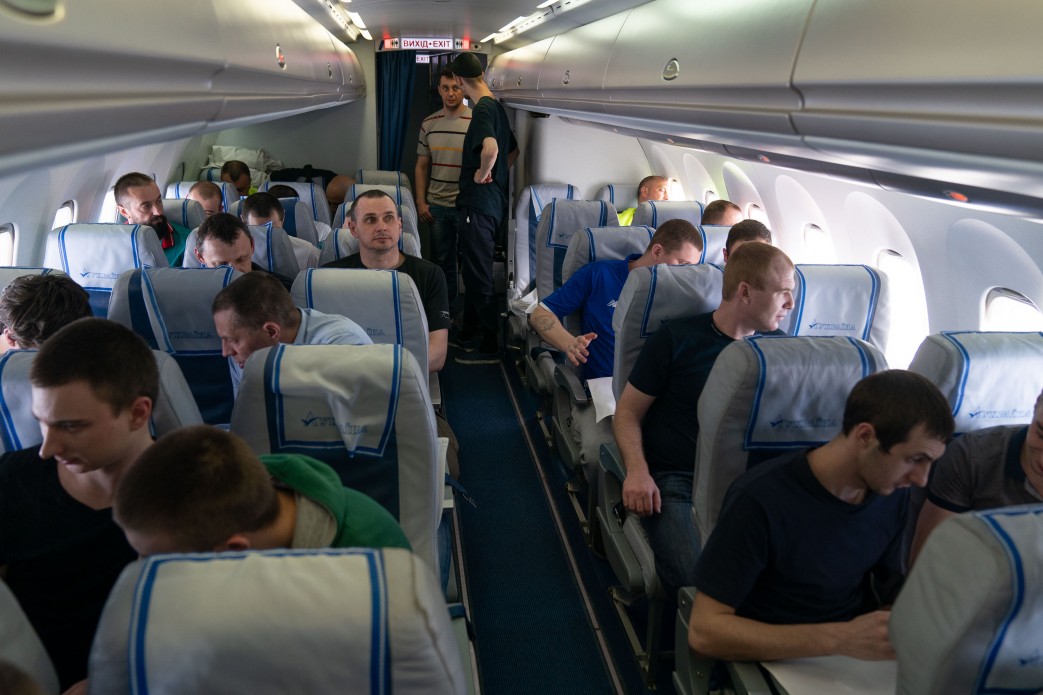 Офис президента Украины опубликовал фотографии из самолета, на котором 35 пленных украинцев прилетели сегодня, 7 сентября, из России в аэропорт "Борисполь".