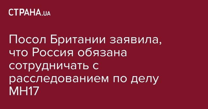 Россия обязана сотрудничать со следователями, которые работают по делу крушения самолета рейса MH17, который сбили на Донбассе в 2014 году. Об этом заявила посол Великобритании в Украине Мелинда Симмонс в своем Twitter.
