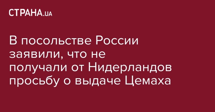 Посольство России в Амстердаме не получало от властей Голландии обращений по поводу выдачи бывшего зенитчика так называемой "ДНР" Владимира Цемаха, которого подозревают в причастности к катастрофе Boeing (рейс MH17) в Украине в 2014 году. Об этом передает РИА "Новости".