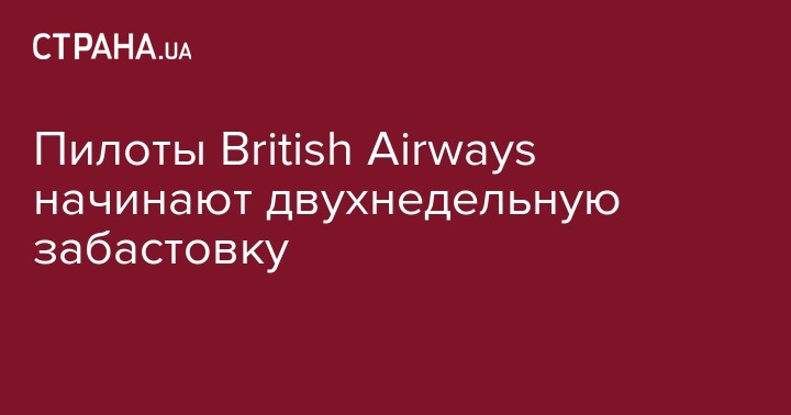 В полночь, с 8 на 9 сентября пилоты авиакомпании British Airways начнут забастовку длительностью в две недели. Сейчас отменены большинство рейсов компании на понедельник и вторник, 9 и 10 сентября. Об этом сообщает BBC.