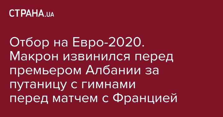 Президент Франции Эммануэль Макрон извинился перед премьер-министром Албании Эди Рамой за ошибку с гимном перед матчем отборочного этапа чемпионата Европы 2020 года. Об этом сообщает канал RMC Sport.