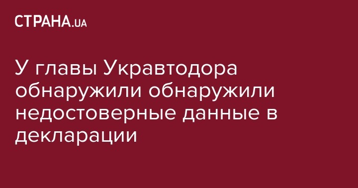 "По результатам полной проверки декларации и.о. председателя Укравтодора за 2017 год Национальное агентство установило декларирования недостоверных сведений на сумму свыше 100 прожиточных минимумов для трудоспособных лиц", - говорится в опубликованном сообщении.