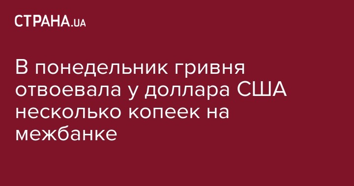 В понедельник, 9 сентября, курс гривни на межбанковском валютном рынке Украины укрепился до 24,9625 грн/$1 с 25,065 грн/$1 в пятницу. Об этом передает Интерфакс-Украина со ссылкой на дилеров коммерческих банков.