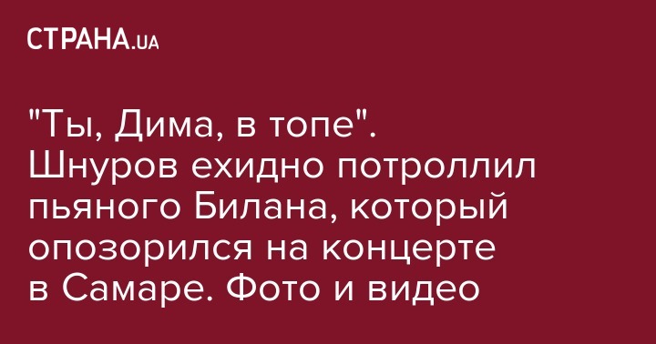 Лидер группы "Ленинград" Сергей Шнуров, в присущей ему стебнутой манере, решил поддержать "коллегу по цеху" и выступил в защиту поп-певца Димы Билана, который вышел на концерт в Самаре пьяным в стельку. Такое явление поп-звезды вызвало шторм негодования в соцсетях.