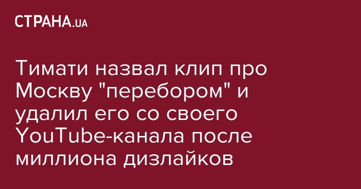 Рэп-исполнитель Тимати удалил клип на трек "Москва" со своего YouTube-канала, который набрал около миллиона дизлайков. Музыкант рассказал о мотивах своего решения и съемках клипа на своей инстаграм-странице. Он отметил, что с с клипом вышел "перебор".