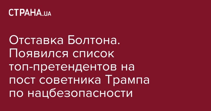 Отставка Болтона. Появился список топ-претендентов на пост советника Трампа по нацбезопасности