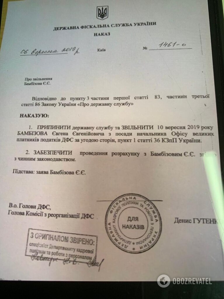 Однако в Государственной налоговой службе информацию Евгения Бамбизова опровергли. А спустя несколько дней стало известно, что руководство Офиса было уволено, а деятельность пресс-службы - парализована. И вот, вчера, 10 сентября был уволен руководитель Офиса крупных налогоплательщиков Евгений Бамбизов.