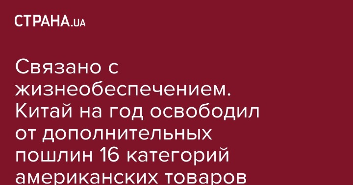 В Китае решили освободить от дополнительных пошлин американские товары 16 наименований. Об этом сообщает Global Times.