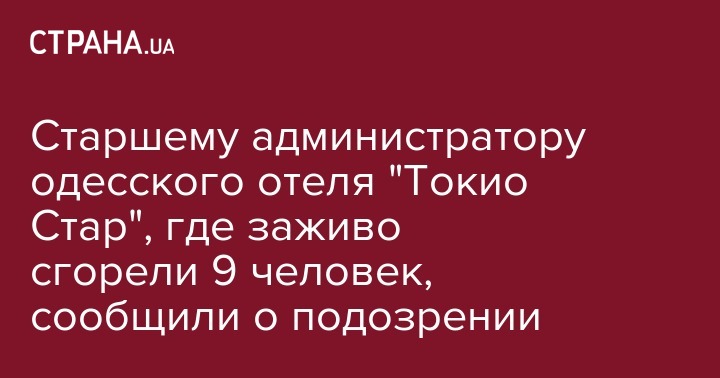 Прокуратура Одесской области сообщила о подозрении старшему администратору отеля "Токио Стар" о нарушении правил пожарной безопасности, повлекшем гибель 9 людей (ч. 2 ст. 270 УК Украины). Об этом сообщается на сайте прокуратуры Одесской области.