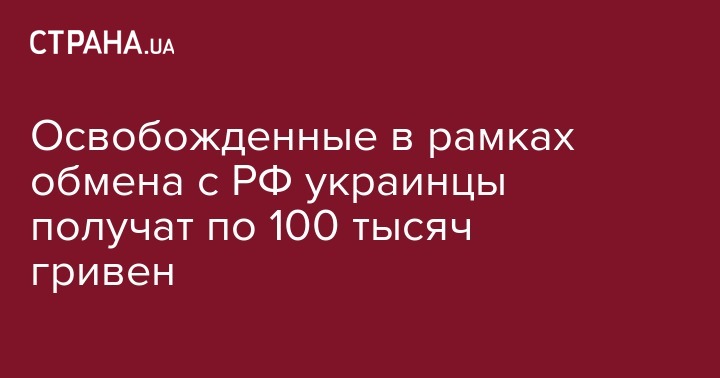 Освобожденные в рамках обмена с РФ украинцы получат по 100 тысяч гривен