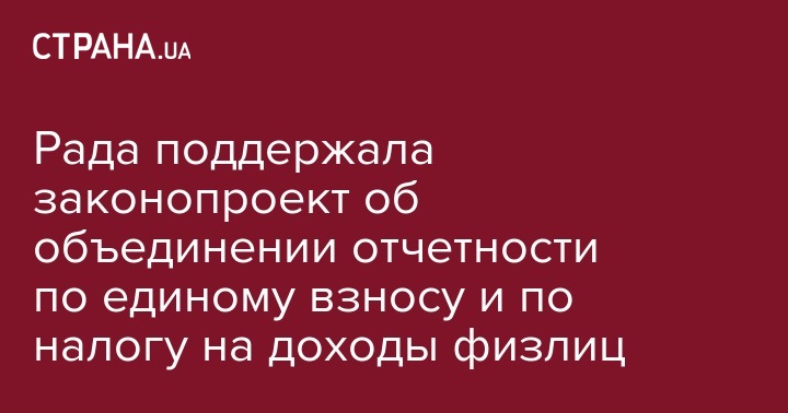 Верховная Рада приняла за основу законопроект №1057 об объединении отчетности по единому социальному взносу (ЕСВ) и налогу на доходы физических лиц (НДФЛ). Об этом сообщает "Интерфакс-Украина".