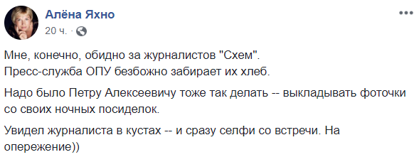 "Мне, конечно, обидно за журналистов "Схем". Пресс-служба ОПУ безбожно забирает их хлеб.