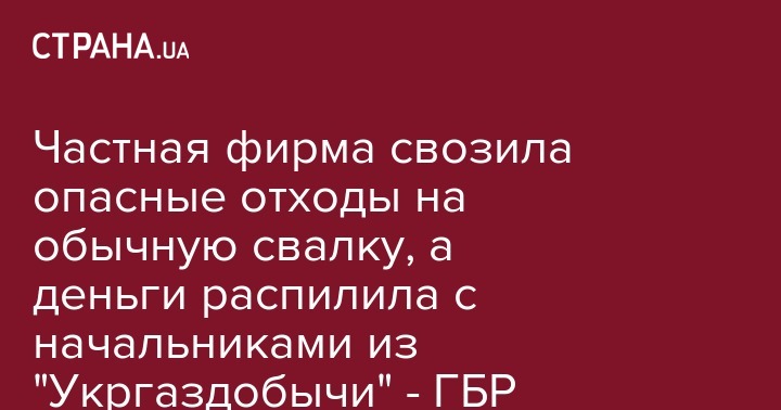 Частная фирма при содействии "Укргаздобычи" свозила опасные для здоровья людей отходы на обычную свалку. Тем самым нанесла ущерб государству на 15 млн. Об этом говорится на сайте Государственного бюро расследований и на сайте Службы безопасности Украины