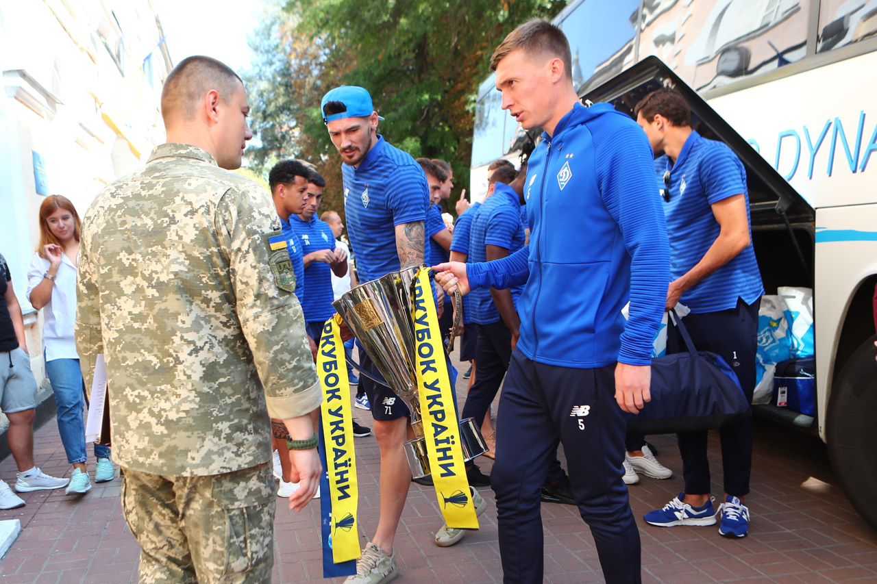 Команда приехала в госпиталь на клубном автобусе, захватив с собой также самый "свежий" трофей - Суперкубок Украины.