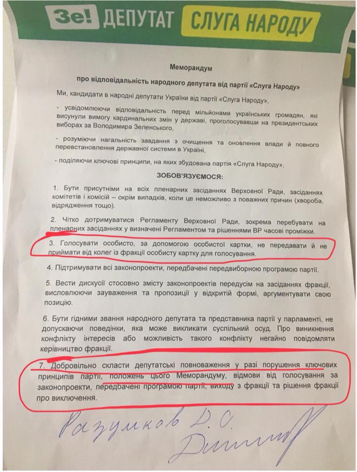 До выборов в "Слуге народа" обещали вообще лишать депутата мандата за кнопкодавство. Канидаты в нардепы даже подписали соответствующий меморандум.