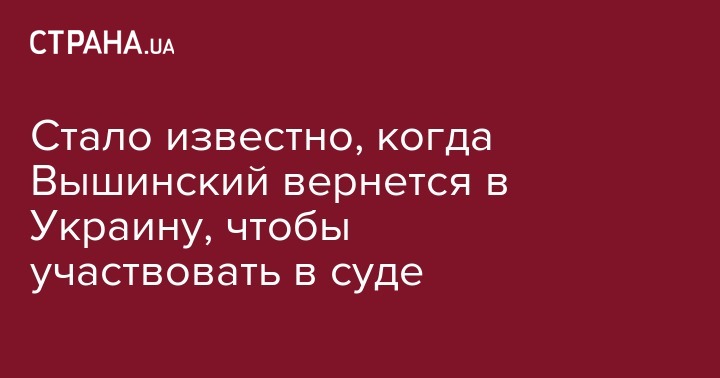 Стало известно, когда Вышинский вернется в Украину, чтобы участвовать в суде