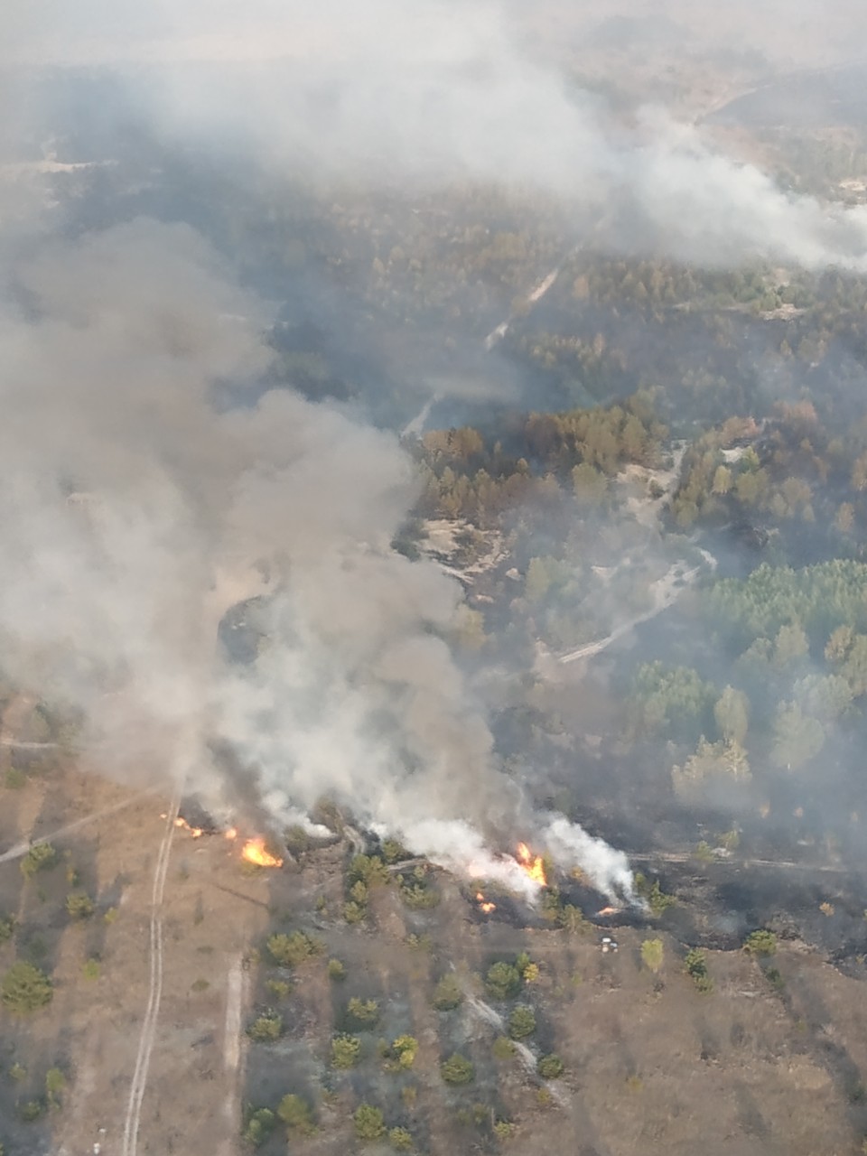 Работает авиация Специального авиационного отряда ГСЧС Украины г.Нежин. Привлечен самолет Ан-32П и вертолет Ми-8. По состоянию на 18:30 авиацией сделано 4 сбросы воды. Тушение пожара продолжается.