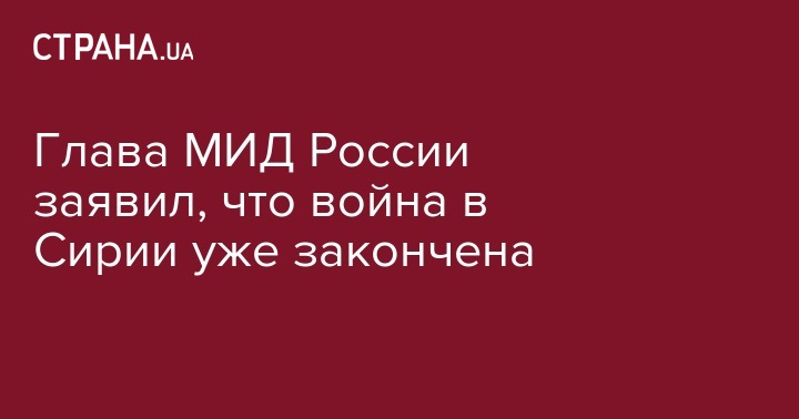 Глава МИД России заявил, что война в Сирии уже закончена