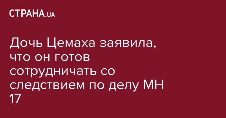 Дочь Цемаха заявила, что он готов сотрудничать со следствием по делу MH 17