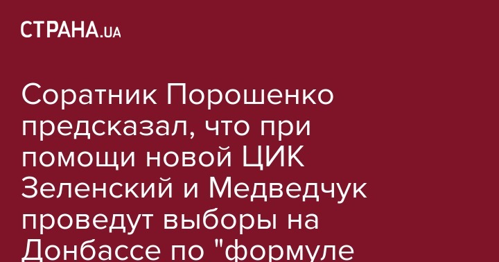 Соратник Порошенко предсказал, что при помощи новой ЦИК Зеленский и Медведчук проведут выборы на Донбассе по "формуле Штайнмайера"