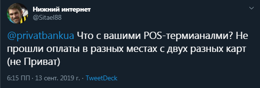 Проблемы наблюдались начиная с 18:00 при попытках воспользоваться системой "Приват24", расплатиться в супермаркетах картой и использовать терминалы самообслуживания.