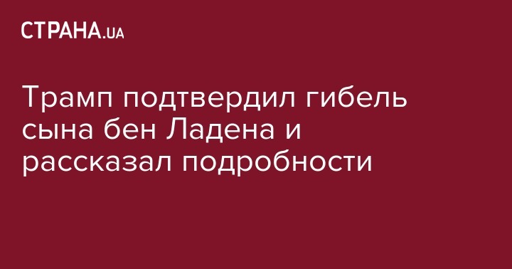 Президент США Дональд Трамп заявил, что сын Усамы бен Ладена, бывшего главаря террористической организации "Аль-Каида", Хамза был уничтожен в результате операции Соединенных Штатов. Об этом сообщает РИА "Новости" со ссылкой на заявление главы государства.