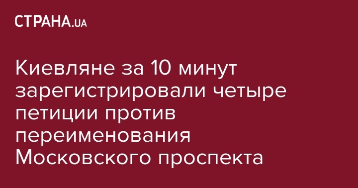 На сайте Киеврады в понедельник, 11 июля, зарегистрировали сразу четыре петиции на одну и ту же тему - авторы выступают против переименования Московского проспекта в проспект Бандеры. Все петиции были зарегистрированы в течение 10 минут - с 12:10 до 12:21. Автор одной из петиций требует перед переименованием поинтересоваться мнением самых киевлян по поводу смены названия проспекта на референдуме.