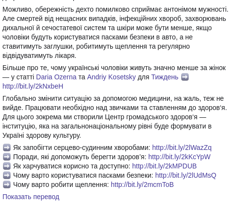 Причина не в здравоохранении, ведь тогда бы не было гендерных различий. Чаще всего убивают мужчин сердечно-сосудистые болезни, которые не появляются ниоткуда. Причина - в совокупности факторов, которые можно обобщить образом жизни. Убивают мужчин прежде всего алкоголь, курение, питание и довольно распространенное пренебрежительное отношение к своему здоровью.