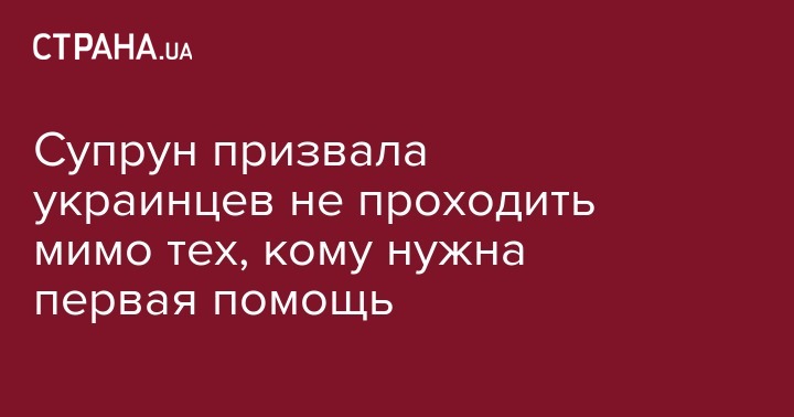 Ульяна Супрун рассказала о первой помощи и о том, почему нужно научиться ее оказывать. Кроме того, она призвала украинцев не проходить мимо, когда кому-то нужна помощь. Об этом она написала пост на Faceebook.