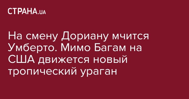 Не успели Багамы и США приступить к ликвидации последствий удара урагана Дориан, как им нужно готовиться к очередной атаке стихии. В Атлантическом океане сформировался новый тропический шторм, которому дали имя "Умберто" и который уже перерос в ураган. Вчера, 15 сентября, он прошел северо-западнее островов Багамского архипелага, и направляется к Флориде.