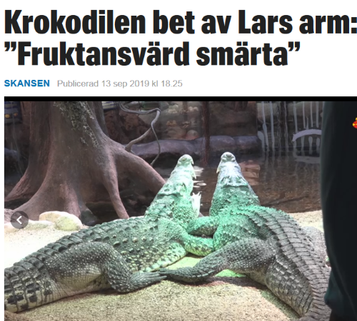 Мужчина сунул руку в бассейн с рептилиями, и один из крокодилов тут же вцепился в нее и не разжимал пасть несколько секунд. Когда Ларса Лидегрена удалось освободить, его направили в госпиталь, где врачи были вынуждены ампутировать ему конечность.
