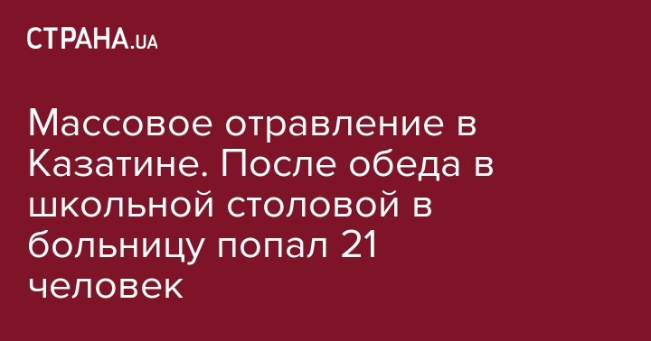 В городе Казатин Винницкой области, 14 сентября, в столовой школы №2 произошло массовое отравление, 21 человек до сих пор находится в больнице. Об этом сообщает пресс-служба ГСЧС Украины