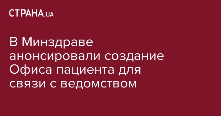 Министерство здравоохранения Украины планирует создать Офис пациента, с помощью которого пациенты смогут связываться с ведомством. Об этом сообщает "Интерфакс-Украина" со ссылкой на министра Зоряну Скалецкую.