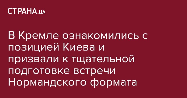 В Кремле ознакомились с позицией Киева и призвали к тщательной подготовке встречи Нормандского формата