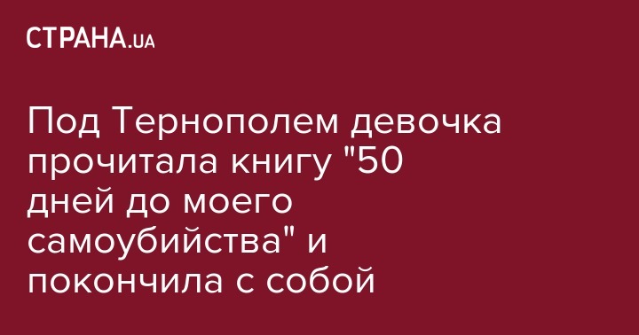 Под Тернополем девочка прочитала книгу "50 дней до моего самоубийства" и покончила с собой