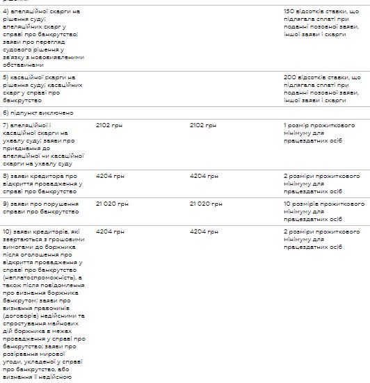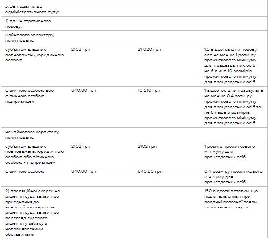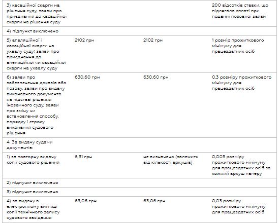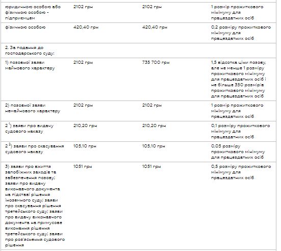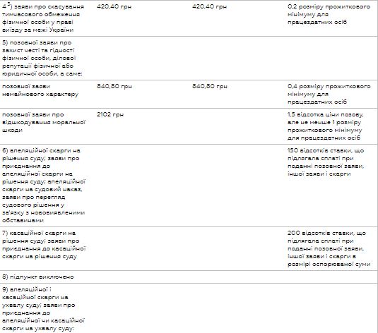Ставки судебного сбора в случае принятия Госбюджета в такой редакции будут следующими: