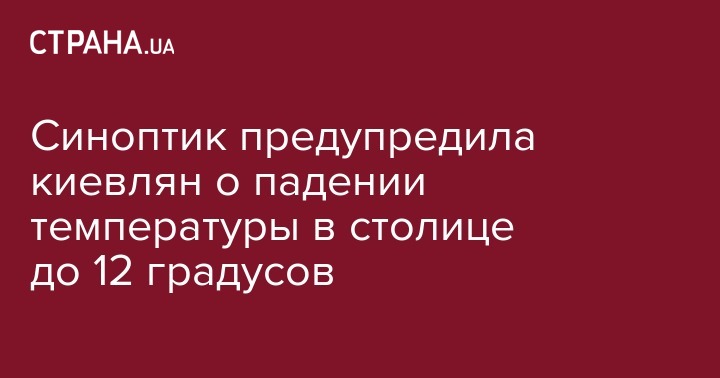 В Киев в среду, 18 сентября, придет резкое похолодание с падением температуры до +12 градусов. Об этом на своей странице в Facebook написала синоптик Наталка Диденко.