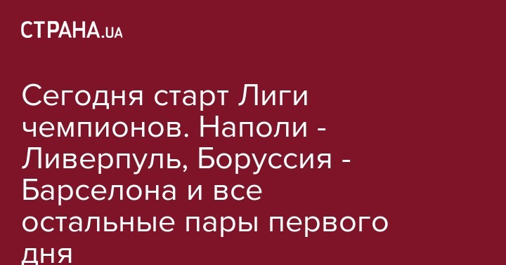 Сегодня старт Лиги чемпионов. Наполи - Ливерпуль, Боруссия - Барселона и все остальные пары первого дня